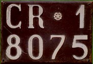 per le versioni D e precedenti (almeno fino al 1962) addirittura la targa quadrata nera in ferro (Fig. 5) (nel ’62 venne introdotta la targa di plastica per tutte le vetture).